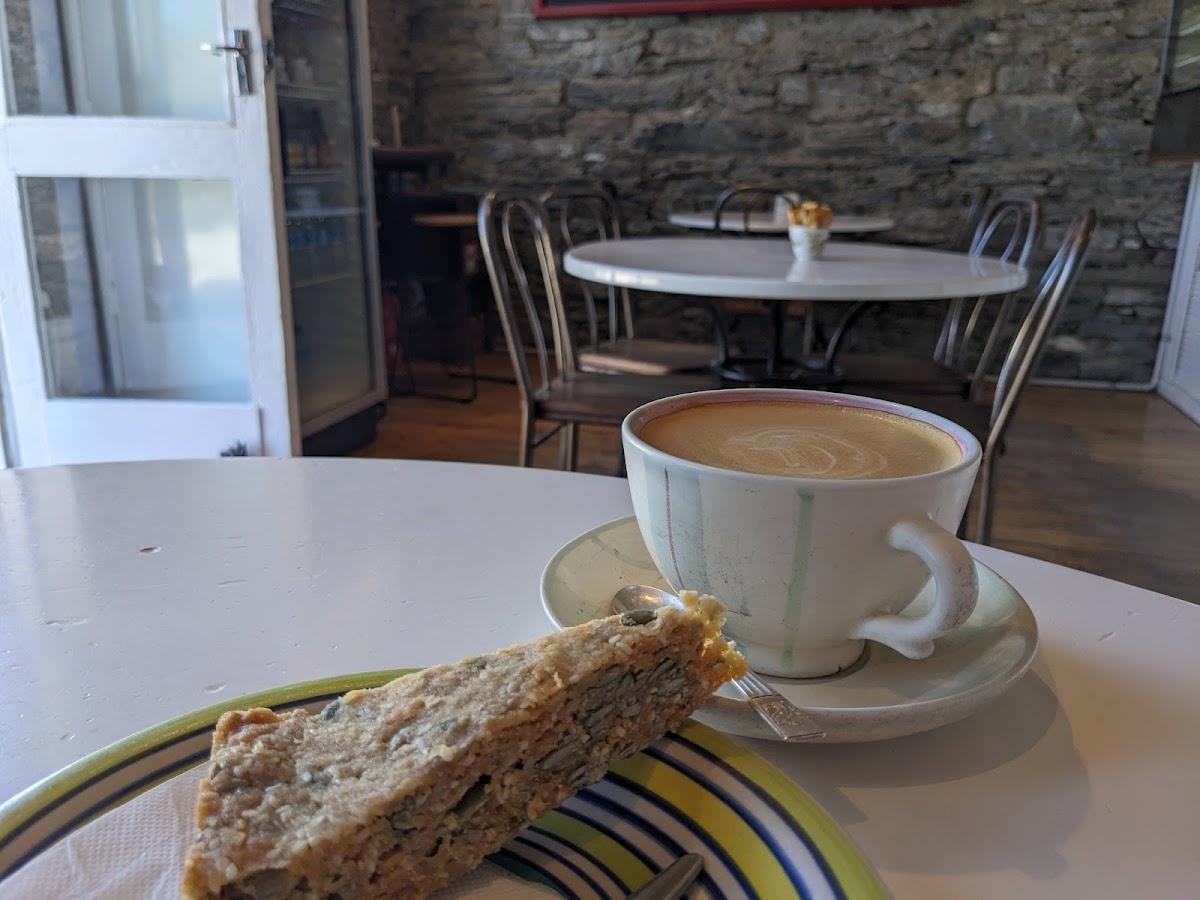 Nice little cafe dating from 1870 in what’s left of the old town after the valley was flooded for the hydro electric power generation. There is seating inside and also outside just across the road overlooking the lake. Good choice of food and the coffee was acceptable